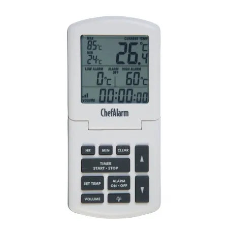 ChefAlarm er atvinnueldunarmælitæki og teljari/tímamælir með skiptanlegum NTC thermistor skynjurum.