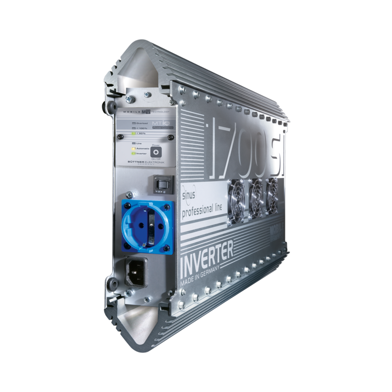 Inverters of the MT series operate as pure sine wave inverters and are consequently suitable for even the most sensitive energy consumers on board (e.g. coffee machines by Saeco, Jura, Senseo, etc.). Even modern vacuum cleaners with sensor control and highly sensitive receivers can be operated easily and unrestrictedly. The MT 600 SI-N is already sufficient for operating TV/SAT, video units, DVD, computers or battery chargers. For larger energy consumers, inverters with 1200 W or 1700 W are available.