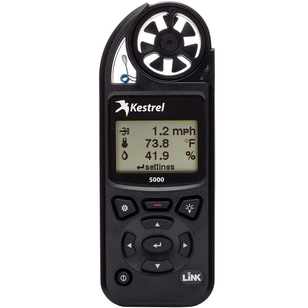 The Kestrel 5000 Pocket Weather Meter is the baseline wind and weather meter in the Kestrel 5000 series. While the Kestrel 5000 Pocket Weather Meter is similar in wind and weather monitoring functions available with the Kestrel 3500 Wind Meter, it has several advantages such as Bluetooth connectivity, data storage, graphing functions, and computer interface technology. It has the capacity to store up to 10,000 data points of weather data, enabling you to track changes in the environment over time, view these changes as graphs on your Kestrel 5000's display, and even upload the data to your PC or Mac. The Kestrel 5000 series is now available with optional Bluetooth LINK Technology, which allows your Kestrel to communicate with your Android or iOS device up to 100 feet away, and maximize the battery life of your weather meter.