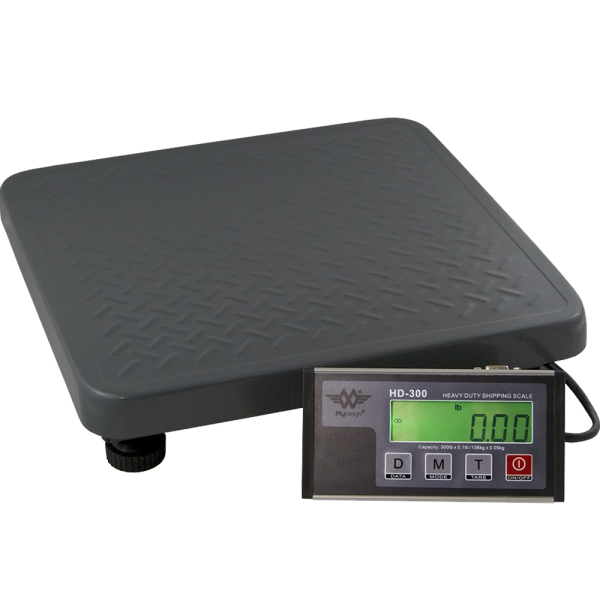 The My Weigh HD is a heavy-duty, digital shipping scale designed for commercial usage. The HD stands for Heavy Duty because this scale is extra durable and designed for shipping, weight checking, and all light industrial uses. Equipped with an extra-large steel platform, a mountable display and USB or RS-232 ports for computer connectivity to UPS and USPS software. Designed for warehouses, the My Weigh HD also has a single-point-load system, programmable auto-off, a bright LCD display and a removable membrane keypad for easy cleaning.