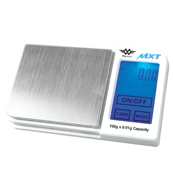 The My Weigh MXT 100 gram & 500 gram are tiny, portable pocket scales: but don’t let the size fool you – these tiny scales pack a big punch! This addition to the My Weigh family of scales are amazingly small (3.5″(W) x 2.3″(L) x 0.6″(H)), are operated by using the innovative touch-screen controls to weigh anything in Grams, Carats, Ounces & Grains for the MXT-100 & Grams, Ounces, PennyWeight & Troy Ounces for the MXT-500.