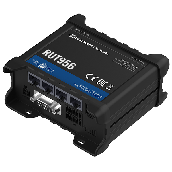RUT956 is an industrial router that combines dual-SIM cellular 4G LTE, Wi-Fi, and wired connectivity options and additionally offers GNSS capabilities.