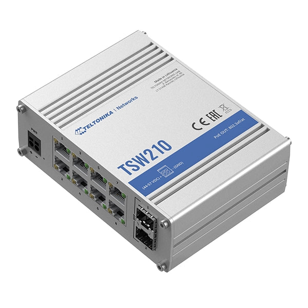 Durable, rugged aluminum housing with DIN rail and surface mounting options make the TSW210 perfect for industrial settings.