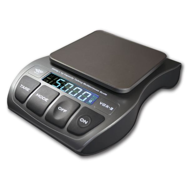 The My Weigh Vox-2 is a talking scale designed to be used by the visually impaired, which speaks in English, German, French, and Spanish. It has been ergonomically designed to facilitate easy interaction for visually impaired users and weighs up to 5000g to an accuracy of 1g. The Vox-2 features a stainless steel platform for easy cleaning and a large backlit blue LCD display. It also has a tare function for weighing things in containers. The My Weigh Vox-2 is powered by 4 AA batteries (included) and features an auto off function to preserve energy.