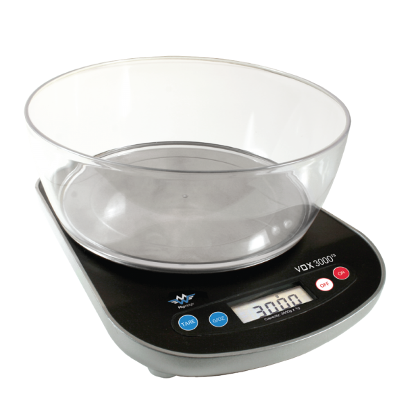 The My Weigh Vox 3000 is a talking kitchen scale that makes weighing while cooking extremely easy.